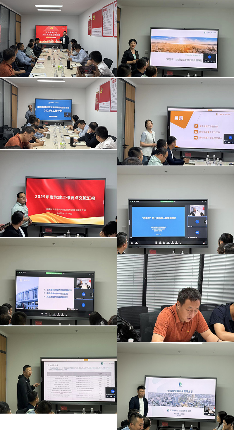 2025年5月14日,上海建科咨詢集團(tuán)京津冀區(qū)域化黨建聯(lián)建平臺(tái)組織京津冀區(qū)域有關(guān)機(jī)構(gòu)在雄安開展“黨業(yè)融合聚合力質(zhì)效提升促發(fā)展”主題實(shí)踐學(xué)習(xí)交流活動(dòng)。天津咨詢黨委書記孫亞龍,集團(tuán)華北區(qū)域管理中心常務(wù)副主任瞿新麗,天津咨詢、北京奧來、建科咨詢?nèi)A北事業(yè)部相關(guān)人員、黨務(wù)部門負(fù)責(zé)人、分公司經(jīng)理、項(xiàng)目經(jīng)理、總監(jiān)等參加會(huì)議。建科院城更所、建科院低碳院綠建部應(yīng)邀線上參會(huì)。會(huì)議由天津咨詢黨委書記孫亞龍主持。