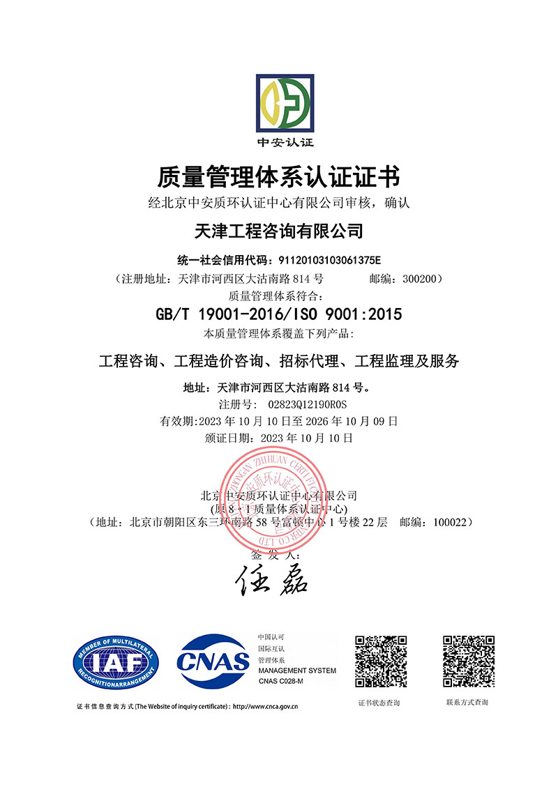 同時(shí),為進(jìn)一步規(guī)范公司內(nèi)部管理,保障服務(wù)質(zhì)量,向管理要效益,天津咨詢啟動(dòng)了ISO三大管理體系認(rèn)證工作。本次通過ISO三大管理體系認(rèn)證審核,對(duì)于公司完善管理體系,推動(dòng)質(zhì)量、環(huán)境、職業(yè)健康安全管理體系持續(xù)有效運(yùn)行,進(jìn)一步提高管理水平具有重要意義,不僅有助于增強(qiáng)企業(yè)競(jìng)爭(zhēng)力,而且樹立了優(yōu)良企業(yè)形象。