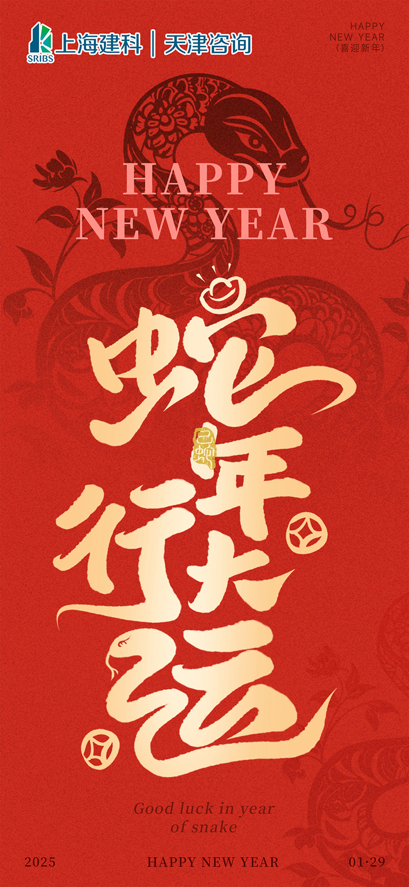 歲序更替,華章日新,在這辭舊迎新的美好時刻,天津咨詢向各級領導、各客戶單位及各界朋友、公司全體員工致以春節的誠摯問候,恭祝大家蛇年吉祥!歲歲常歡愉,萬事皆勝意!