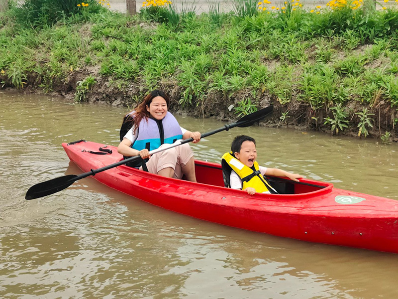 濕地皮劃艇項目將上午的活動推向高潮。大家躍上皮劃艇,在粼粼波光中揮槳前行,或你追我趕,上演一場酣暢淋漓的水上競速;或悠然自得,沉醉于濕地的如畫風光。水面上歡笑聲與加油聲此起彼伏,奏響了活力四溢的夏日樂章。