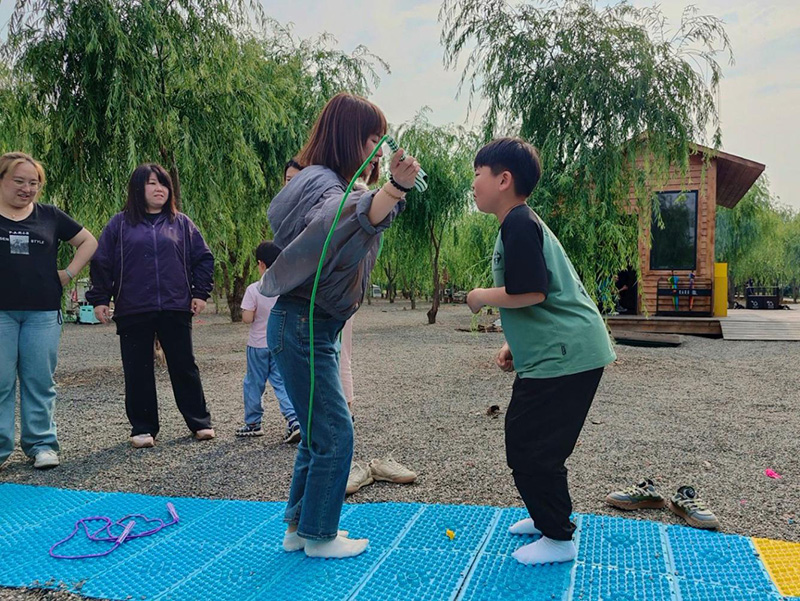 最后的指壓板大戰搖身變為一場“童年闖關大挑戰”。大家赤足踏上指壓板,挑戰跳繩、跳格子等經典童年游戲任務。腳底雖傳來陣陣酸爽刺激,臉上卻始終綻放著燦爛笑容,咬牙堅持。團隊成員們在一旁奮力吶喊助威,互相鼓舞打氣,齊心協力共闖難關,在歡笑與互助中凝聚起強大的團隊力量,將活動氛圍推向頂點。