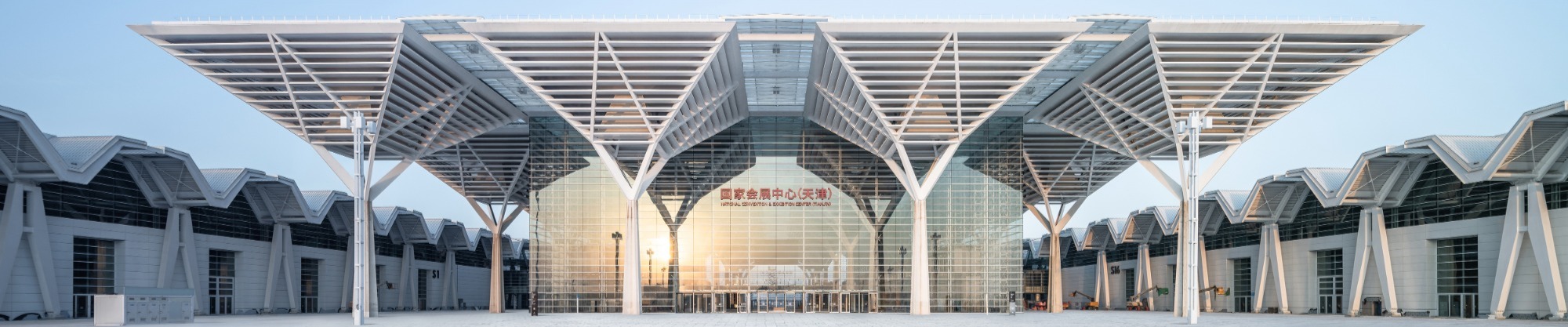 國家會展中心(天津)體量龐大、造型規(guī)整,集展覽、會議、商業(yè)、辦公、酒店功能于一體??偨ㄖ娣e約134萬平米,其中室內(nèi)展覽面積約40萬平米, 室外展覽面積約15萬平米,為中國展覽面積最大、使用體驗最佳的會展綜合體。項目分兩期建設,一期工程總建筑面積約80萬平米,室內(nèi)展覽面積約20萬平米,總停車位數(shù)5000余個。