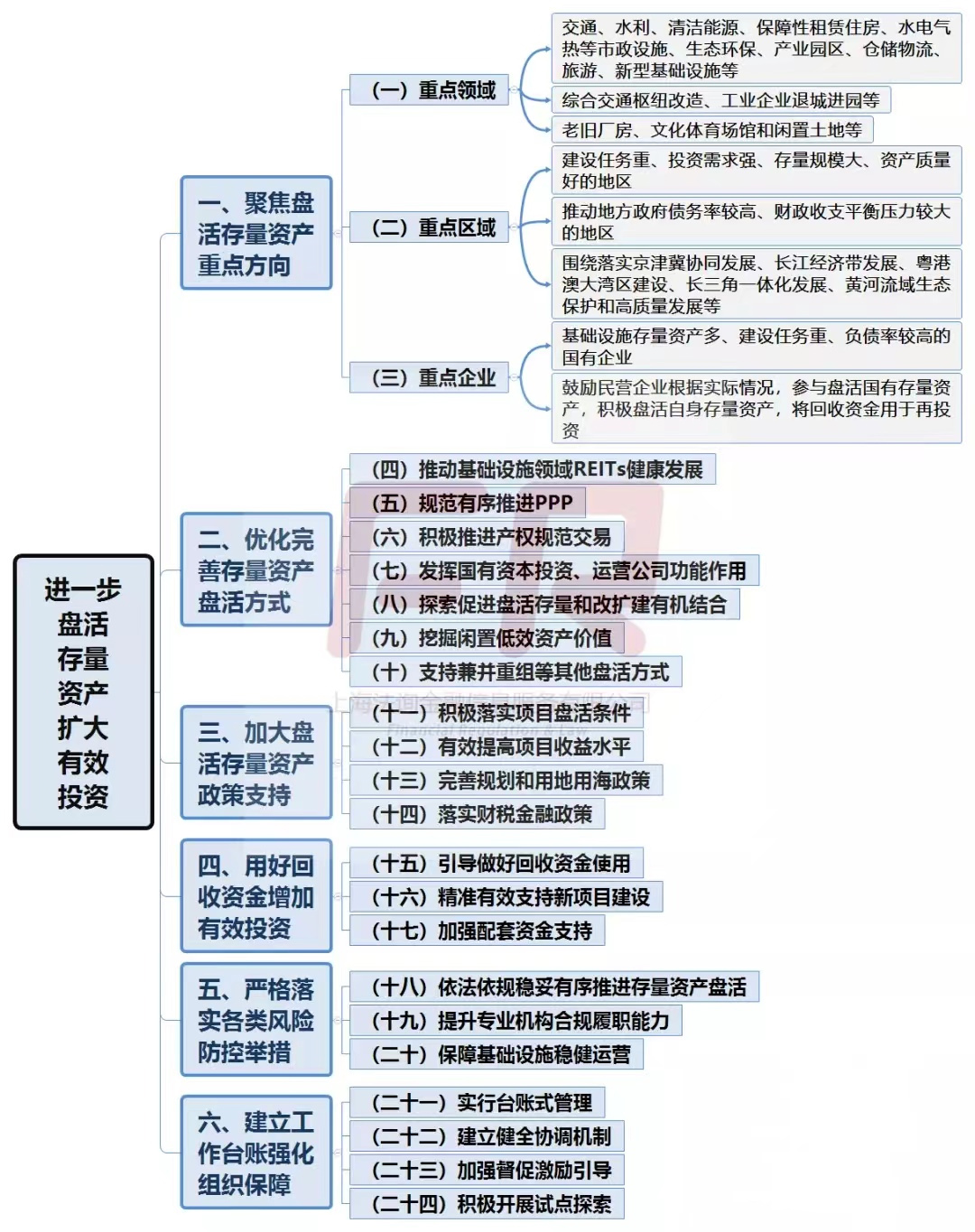 剛剛,國務院辦公廳發布《關于進一步盤活存量資產擴大有效投資的意見》(國辦發〔2022〕19號)。新規共提出24條意見,整體框架如下: